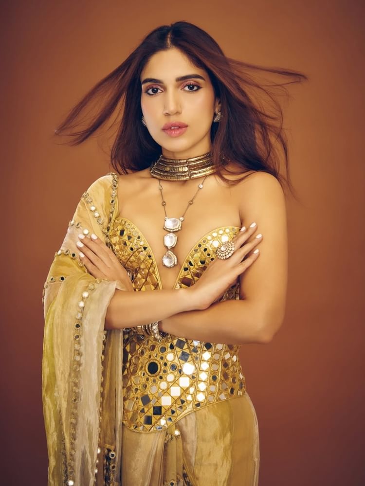 भूमि पेडनेकर ने दोस्त की शादी के लिए अपनाया गोल्डन लुक